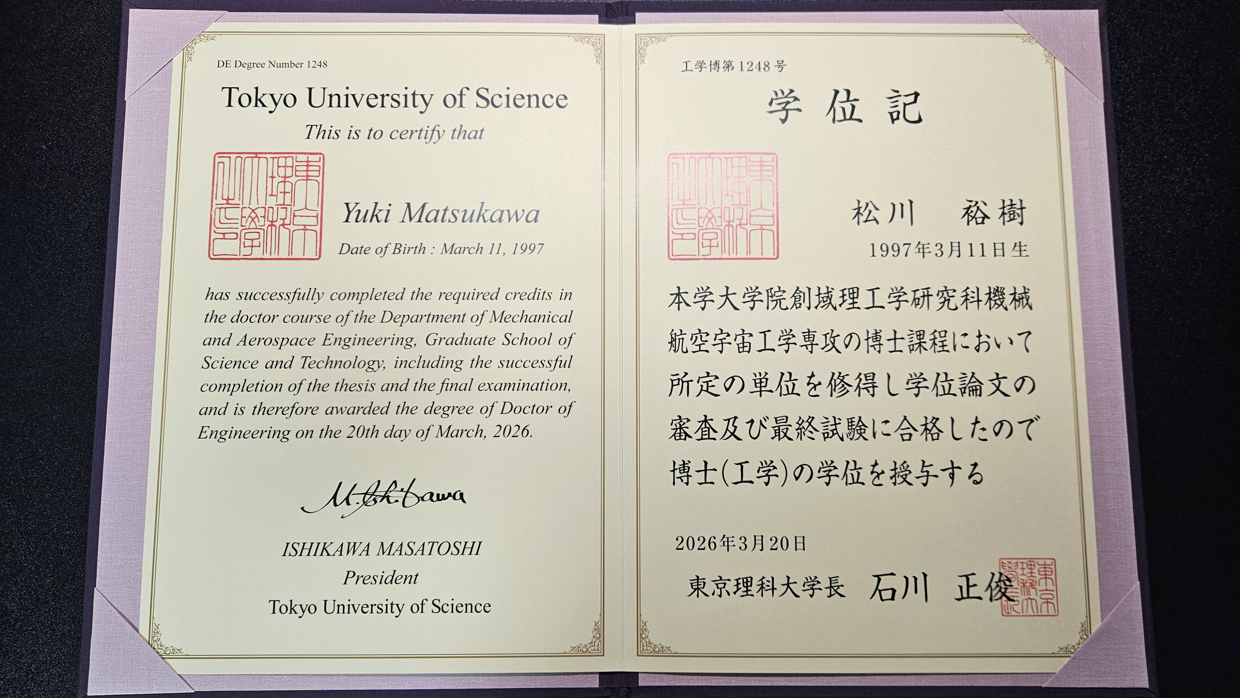 - I was awarded the degree of Doctor of Engineering at the 2025 Tokyo University of Science Graduation Ceremony, held at Nippon Budokan on Friday, March 20, 2026.